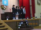 中学校の卒業生は7名でした。感謝の言葉では在校生から、お礼。卒業生は、一人一人が中学校での思い出を語り、代表が在校生に感謝の言葉を贈りました。卒業生の合唱は「YEEL」で7人の歌声を体育館に響かせました。