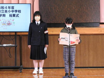 代表の児童生徒は、二学期までの生活を振り返りながら三学期の目標を掲げました。
